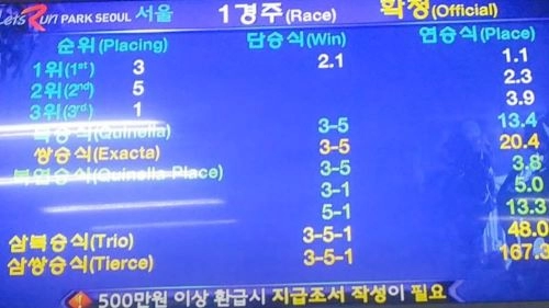 쌍승식 15.6배가 꽂쳤다고 하더라구요.