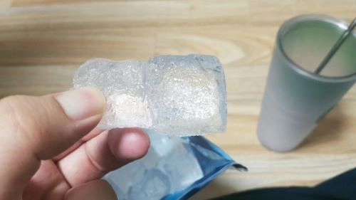 각얼음 두개를 입에 넣고 녹이기 시작합니다.
