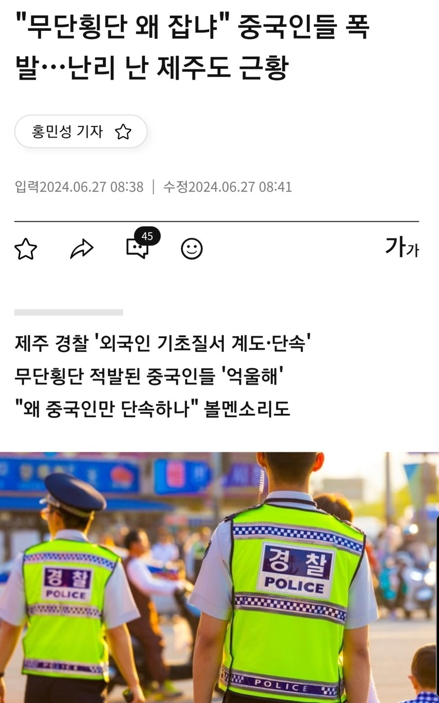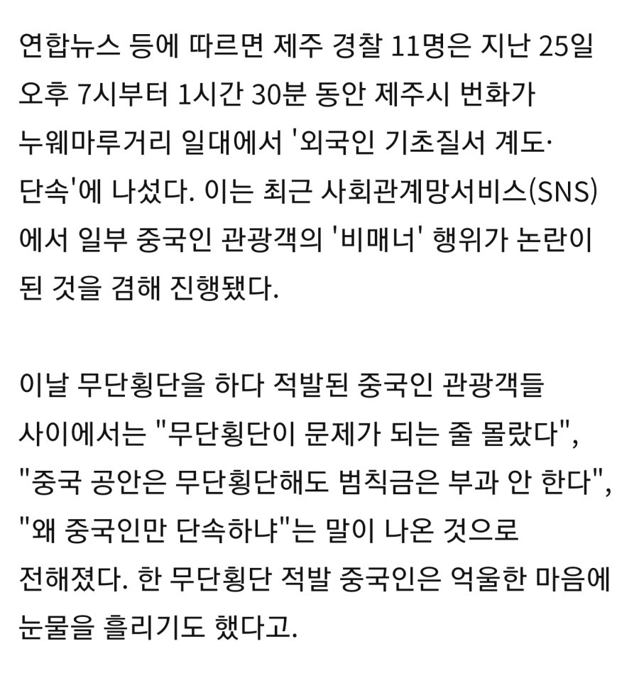 "무단횡단 왜 잡냐" 중국인들 폭발