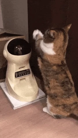 사료 달라며 두 앞발 닳도록 빌고 있는 고양이