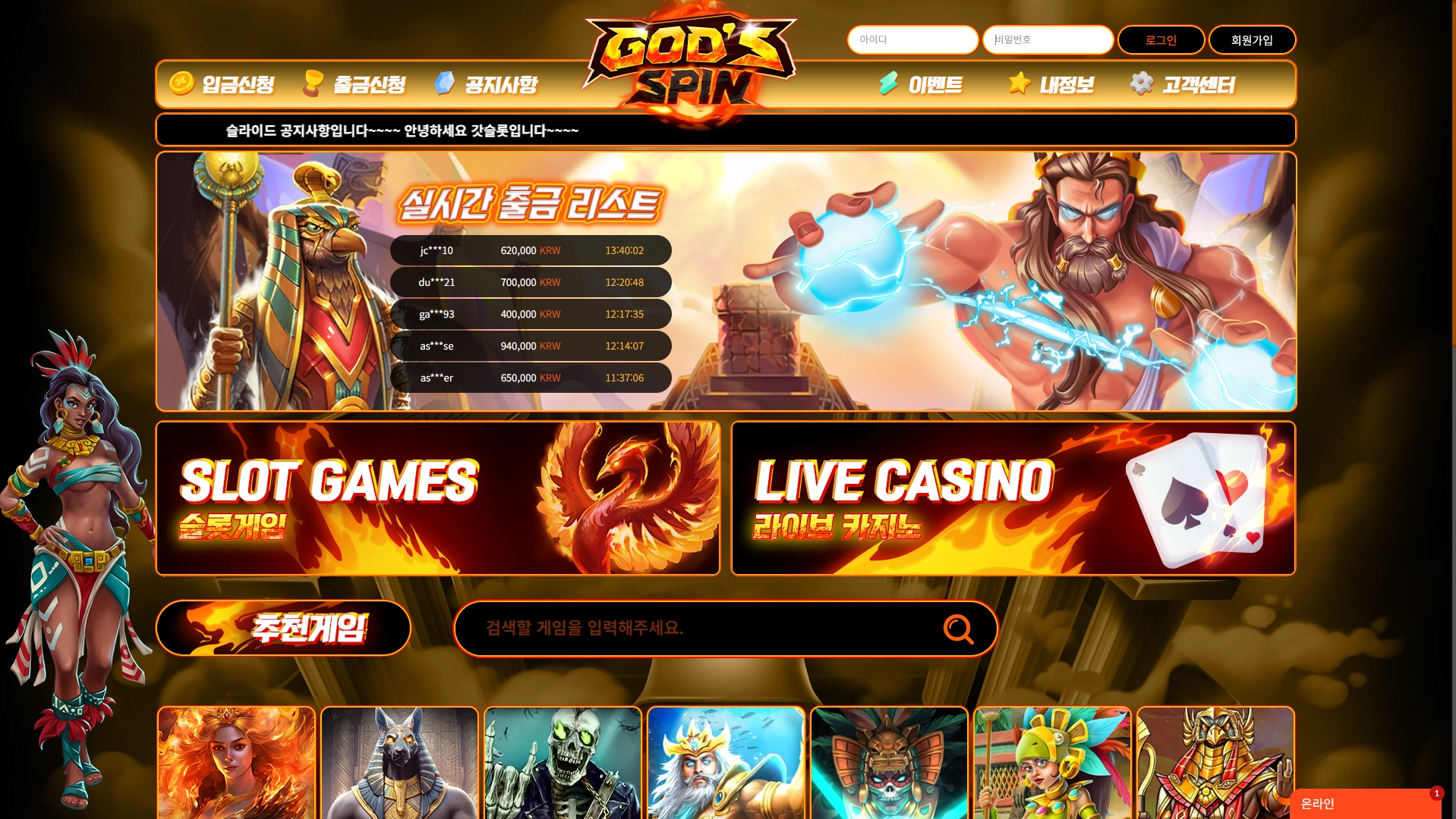 온라인카지노를 기반으로 한 갓스핀은 안정성과 공정성을 최우선으로 생각하는 카지노사이트입니다.