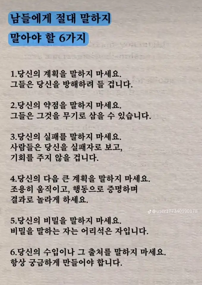 다른 사람에게 말하지 말아야 할것들