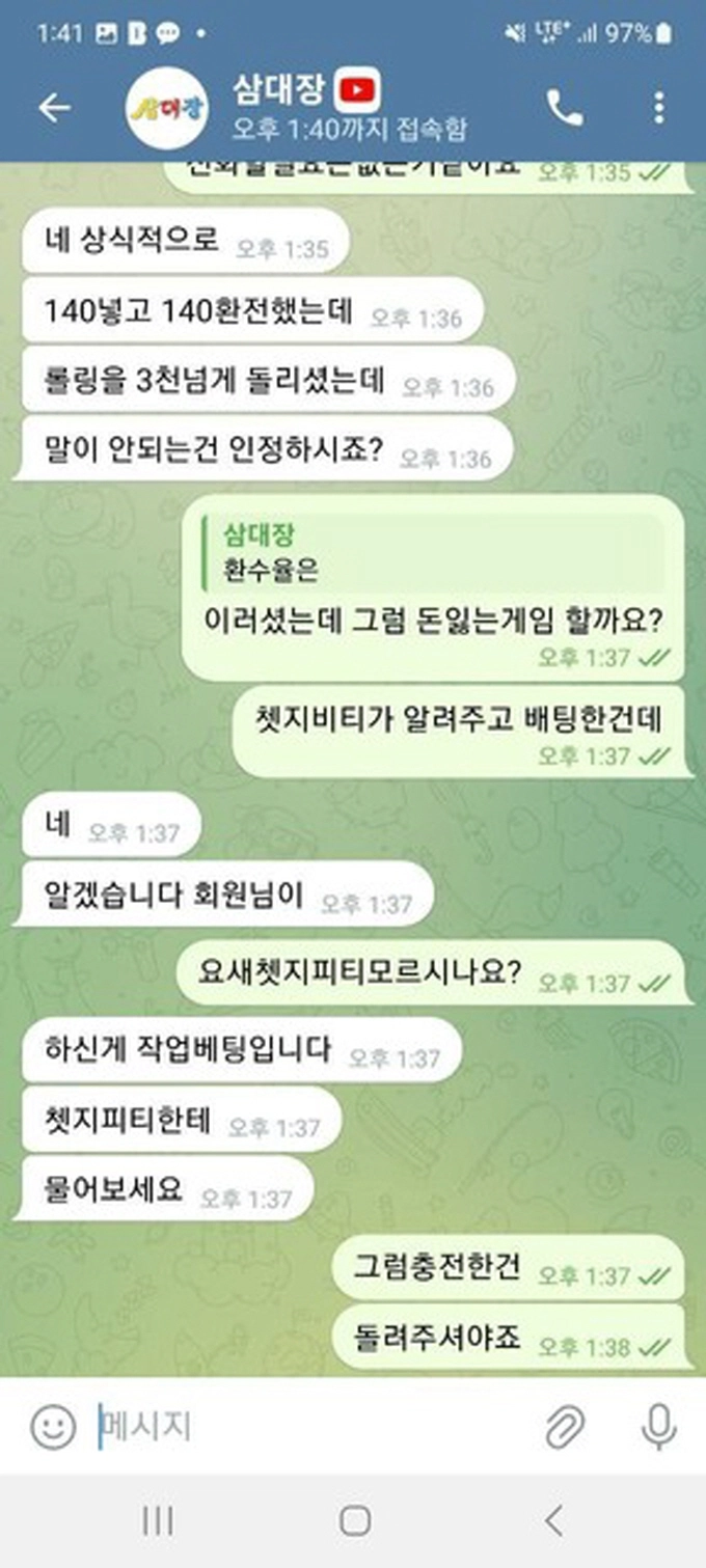회원이 돈을 따면 돈이 없어서 환전도 안 해주고
